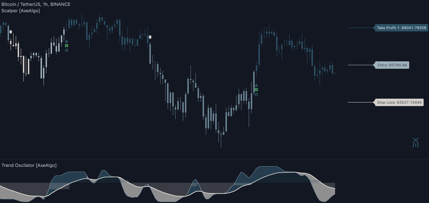 AxeAlgo Provides you a Buy/Sell Scalper with Fast/Medium/Slow Scalping Mode Signals with Multiple Filter Options and Alerts.